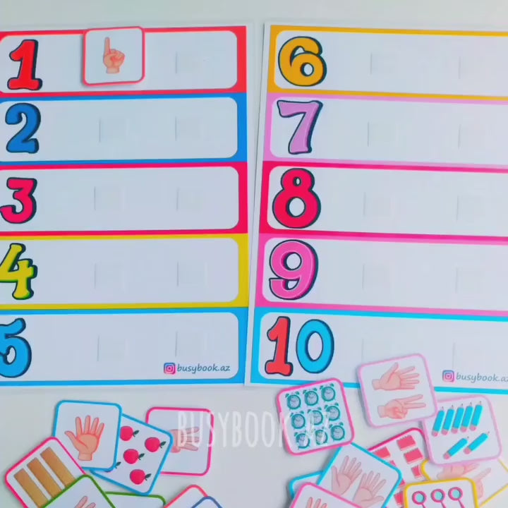 Your child selects a number and finds matching cards with the same number of items and fingers. By attaching them with velcro, they practice matching numbers with quantities and build early math understanding.